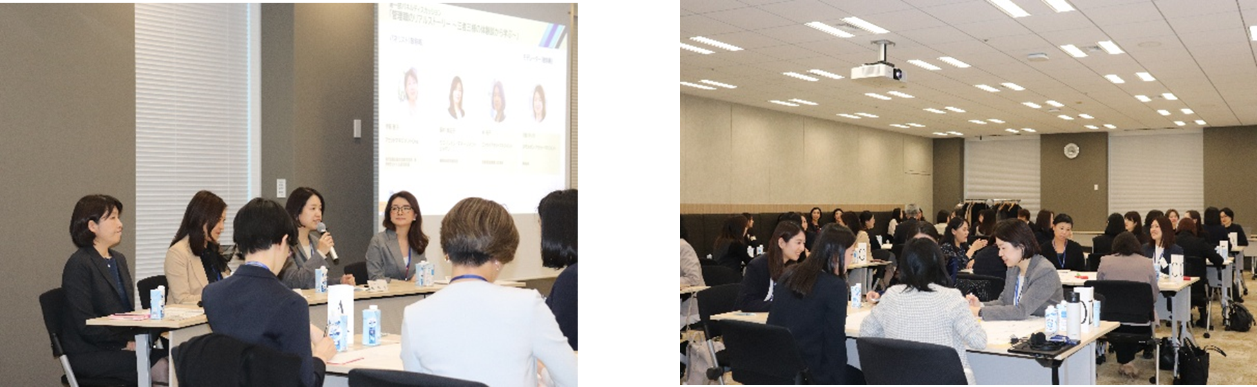 第二部では、参加者がグループに分かれ、現役管理職がモデレーターとして加わり、キャリア形成に関する悩みや疑問についてグループディスカッションを実施。その後、各グループの議論内容を発表しました。「同業他社の女性社員も同じ悩みを抱えていることを知り安心した」「異なる立場の意見を聞けて参考になった」といった声があり、グループディスカッションを通じて新たな視点を得た参加者も多かったようです。