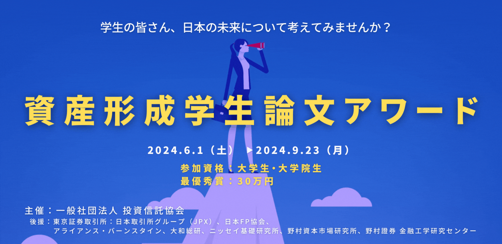 資産形成学生論文アワード2024受賞者、論文名及び各論文への審査講評を公表いたします。